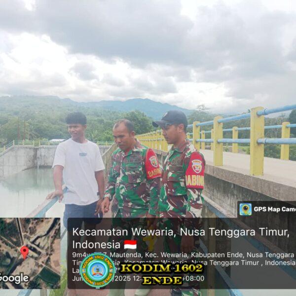 Ende – Dalam rangka mendukung pendataan wilayah dan membantu kebutuhan masyarakat di wilayah binaan, Babinsa Koramil 1602-03/Detusoko melaksanakan kegiatan peninjauan debit air Bendungan Mautenda sekaligus pengecekan jaringan irigasi di Desa Mautenda, Kecamatan Wewaria, Kabupaten Ende, Jumat (12/12/2025).